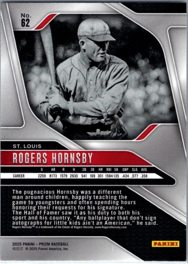 2025 Panini Prizm #62 Rogers Hornsby