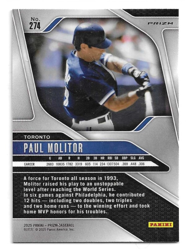 2025 PANINI PRIZM PRIZMS SILVER #274 PAUL MOLITOR
