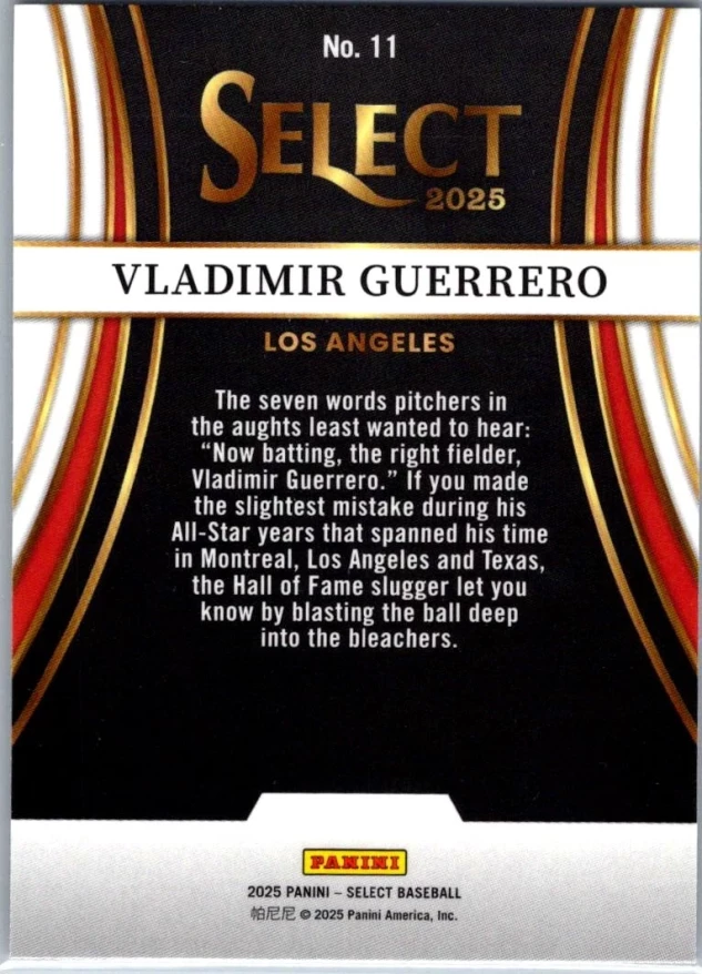 This is a nice example of a 2025 Panini Select #11 Vladimir Guerrero Turbo Charged