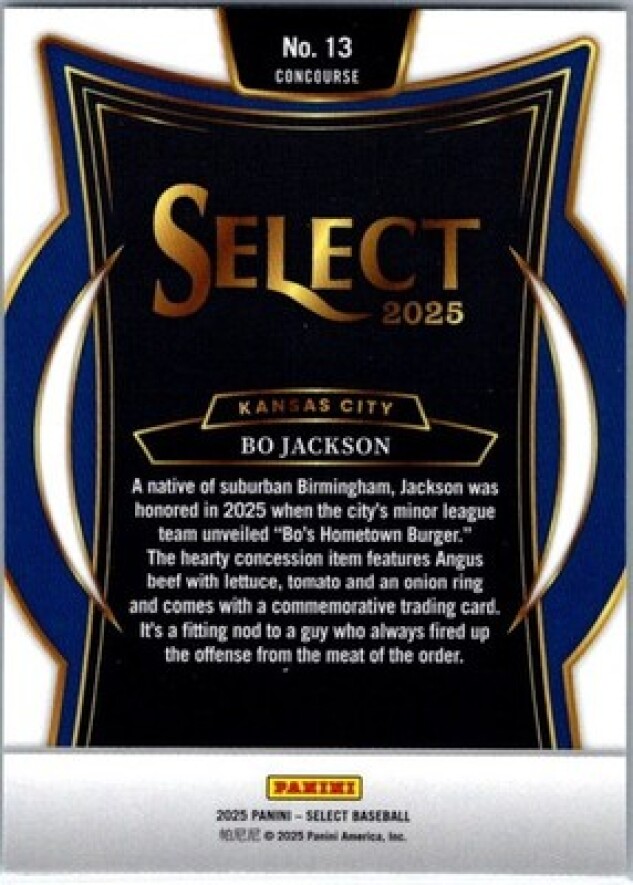 This is a nice example of a 2025 Panini Select #13 Bo Jackson