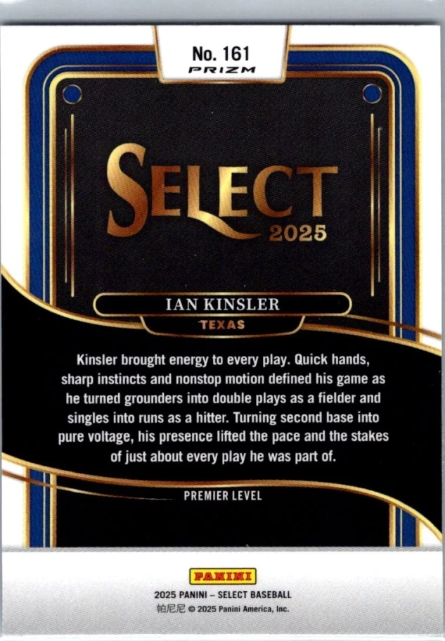 This is a nice example of a 2025 Panini Select #161 Ian Kinsler Silver Prizms