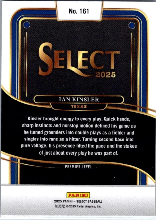 This is a nice example of a 2025 Panini Select #161 Ian Kinsler