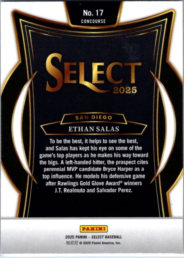 This is a nice example of a 2025 Panini Select #17 Ethan Salas