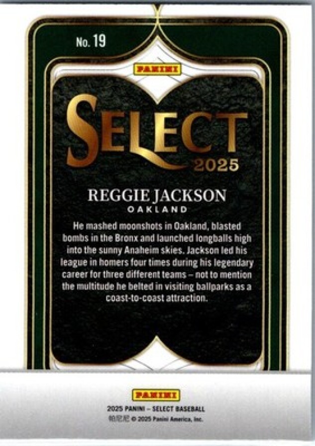 This is a nice example of a 2025 Panini Select #19 Reggie Jackson Select Numbers