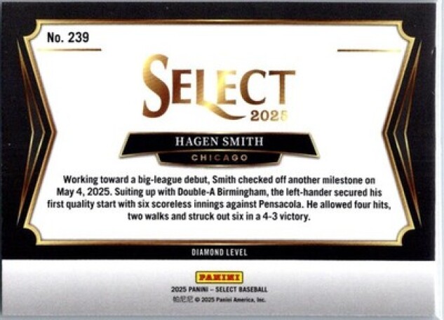 This is a nice example of a 2025 Panini Select #239 Hagen Smith