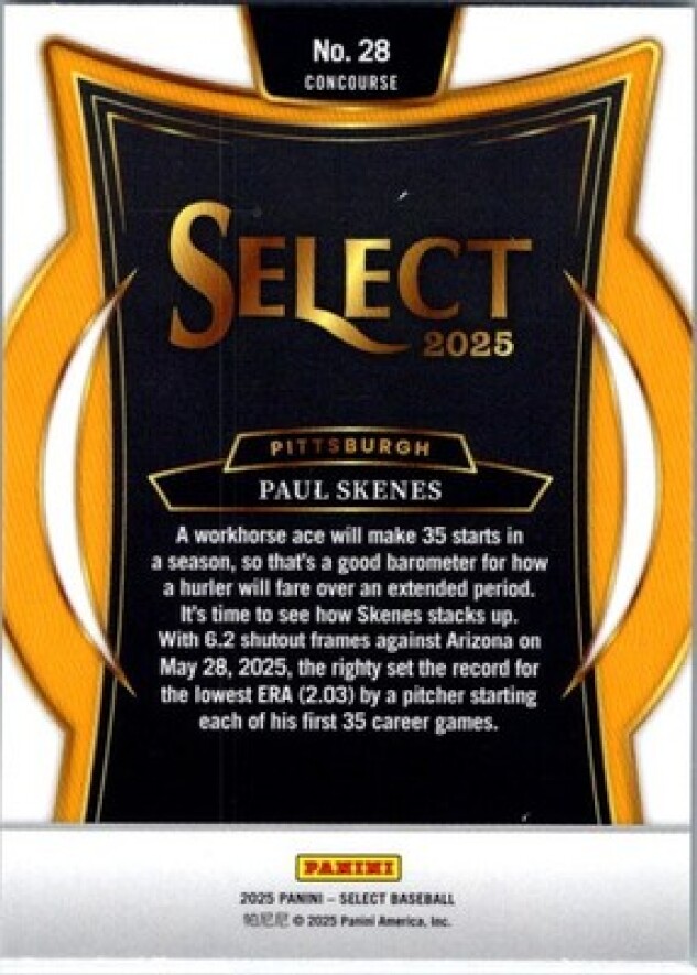 This is a nice example of a 2025 Panini Select #28 Paul Skenes