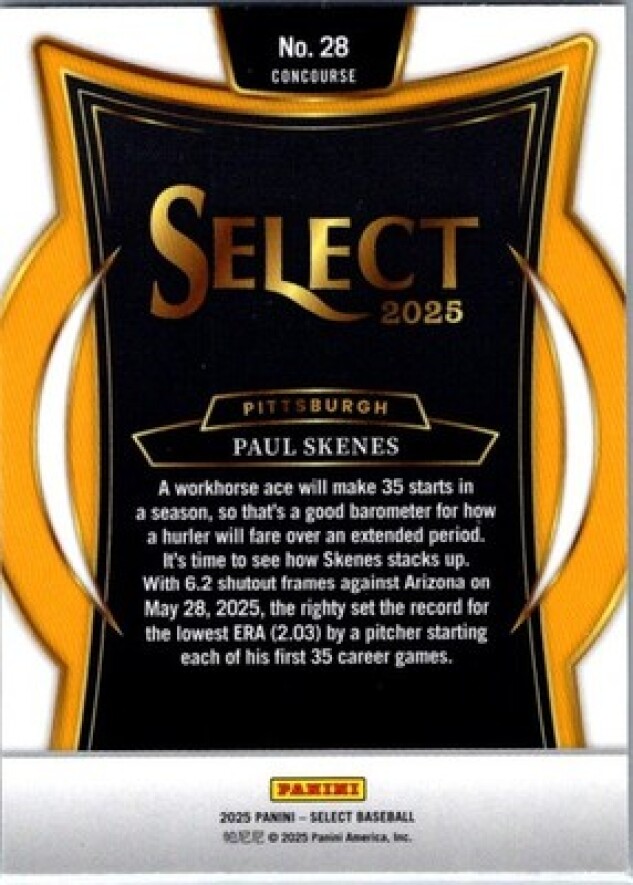 This is a nice example of a 2025 Panini Select #28 Paul Skenes