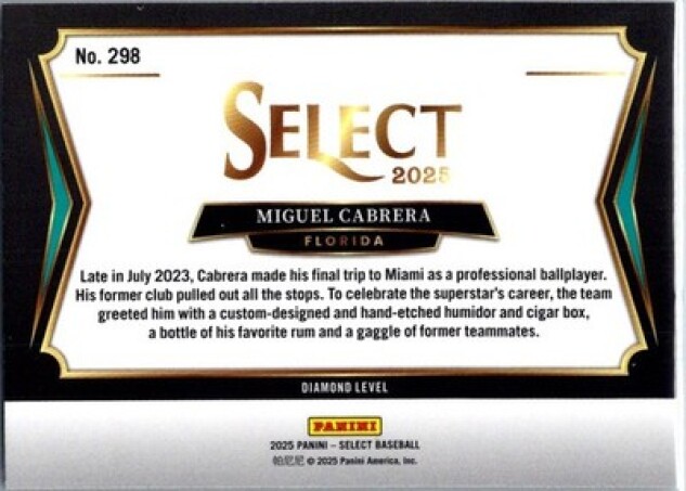This is a nice example of a 2025 Panini Select #298 Miguel Cabrera