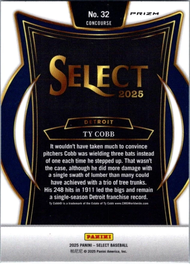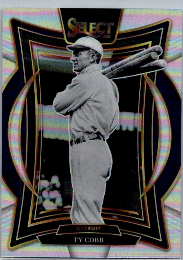This is a nice example of a 2025 Panini Select #32 Ty Cobb Silver Prizms