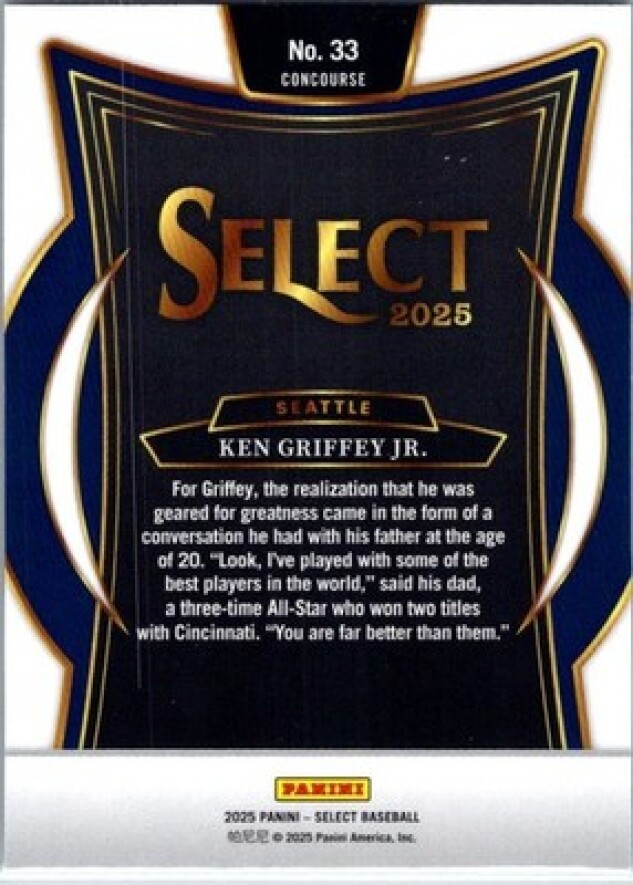 This is a nice example of a 2025 Panini Select #33 Ken Griffey Jr.
