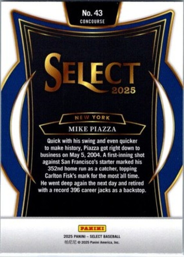 This is a nice example of a 2025 Panini Select #43 Mike Piazza