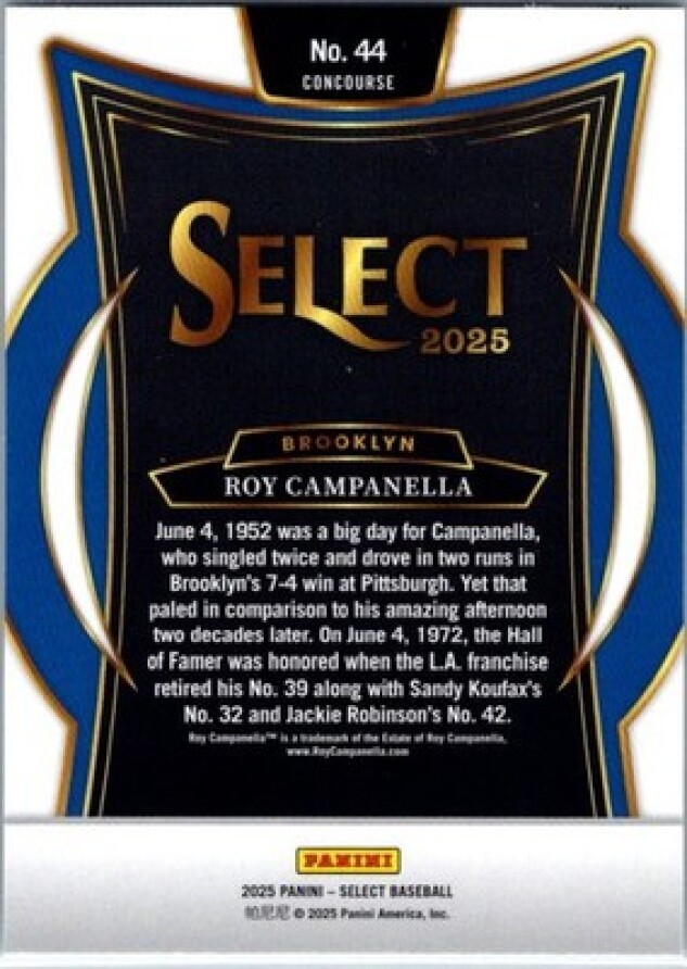 This is a nice example of a 2025 Panini Select #44 Roy Campanella