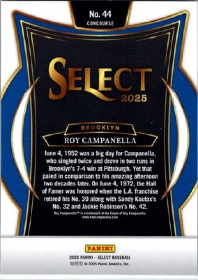 This is a nice example of a 2025 Panini Select #44 Roy Campanella