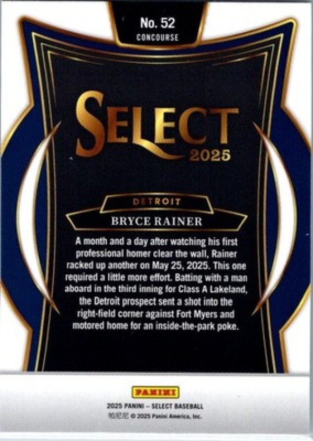 This is a nice example of a 2025 Panini Select #52 Bryce Rainer