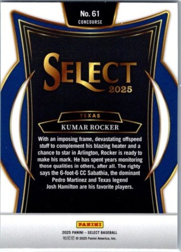 This is a nice example of a 2025 Panini Select #61 Kumar Rocker