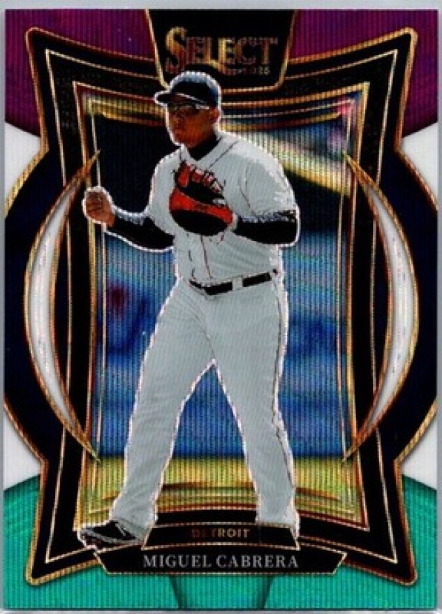 This is a nice example of a 2025 Panini Select #67 Miguel Cabrera Tri-Color Prizms