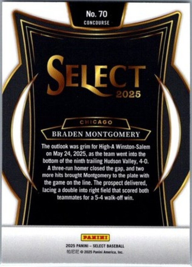 This is a nice example of a 2025 Panini Select #70 Braden Montgomery