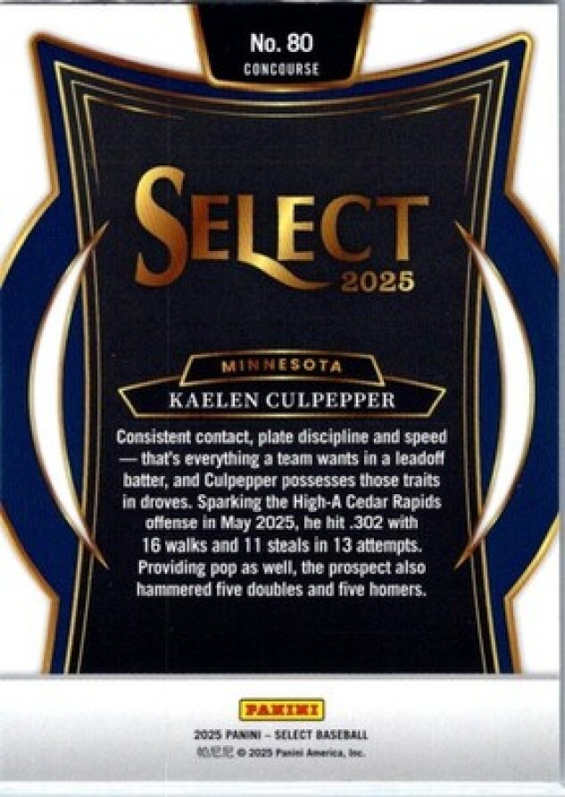 This is a nice example of a 2025 Panini Select #80 Kaelen Culpepper