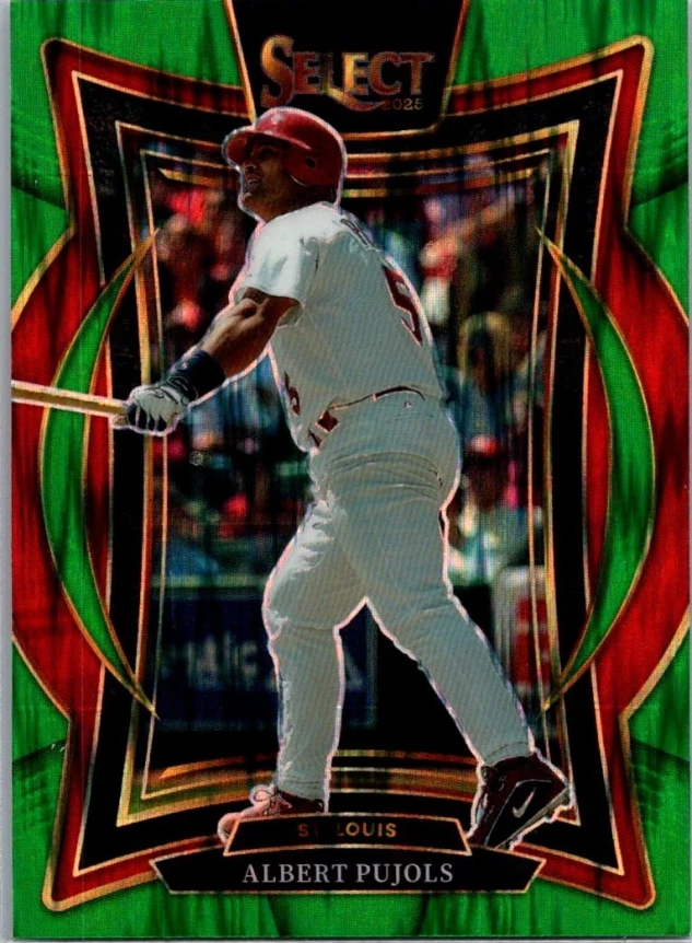 This is a nice example of a 2025 Panini Select #86 Albert Pujols Green Flash Prizms