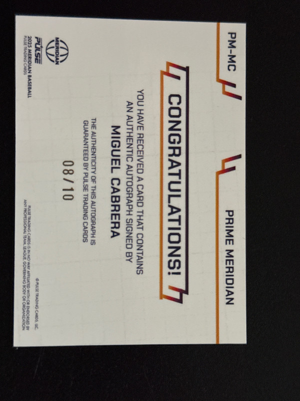 2025 Pulse Meridian Baseball Miguel Cabrera /10