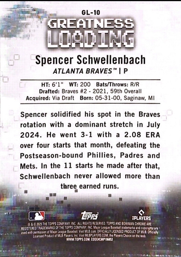 2025 Spencer Schwellenbach Topps Bowman Chrome Greatness Loading Refractor #GL-10