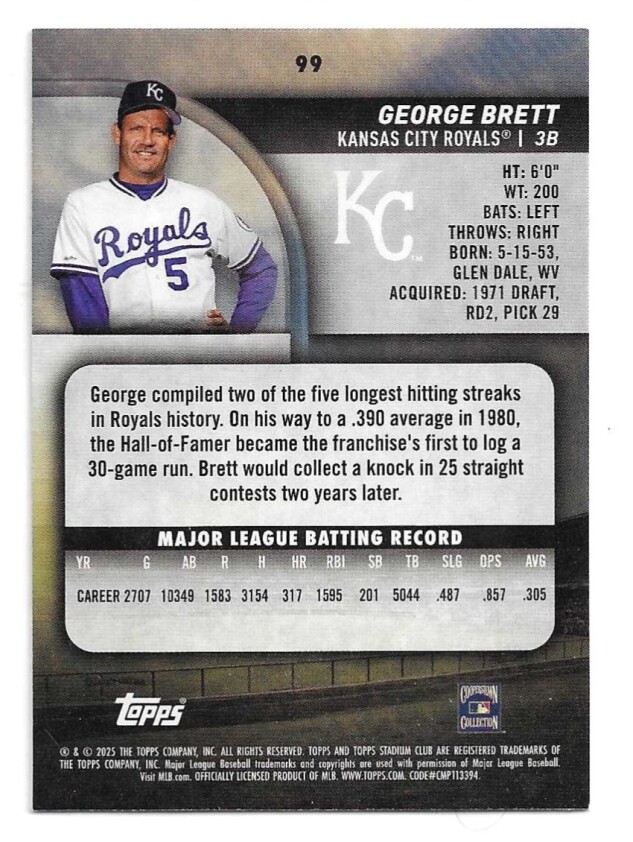 2025 TOPPS STADIUM CLUB #99 GEORGE BRETT