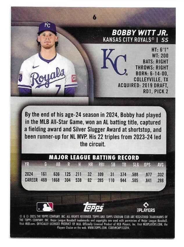 2025 TOPPS STADIUM CLUB SEPIA #6 BOBBY WITT JR.