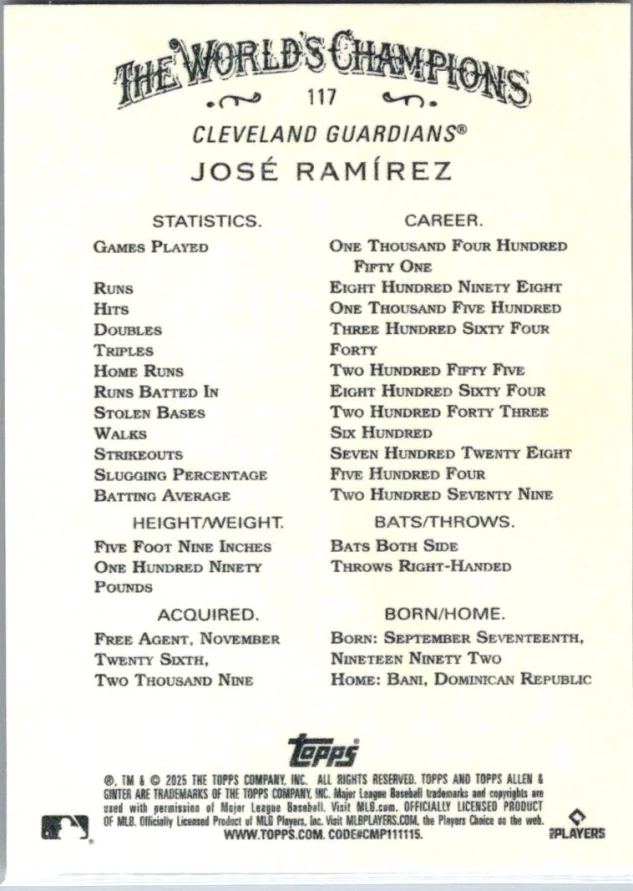 In 2025 José Ramírez played for the Cleveland Guardians.