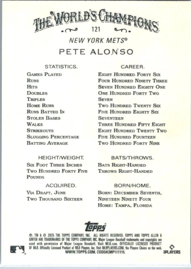 2025 Topps Allen & Ginter #121 Pete Alonso