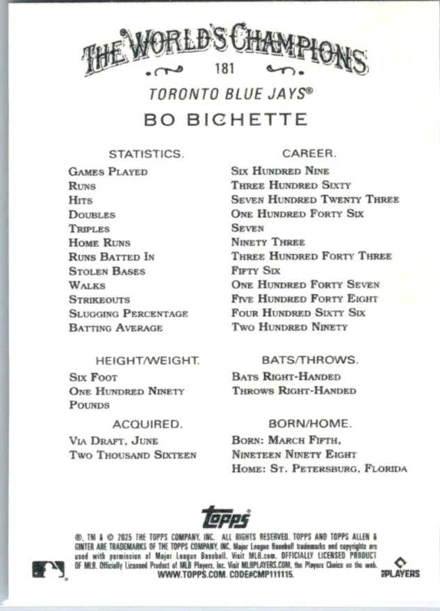 This is a nice example of a 2025 Topps Allen & Ginter #181 Bo Bichette