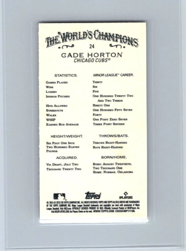 This is a nice example of a 2025 Topps Allen & Ginter #24 Cade Horton Mini