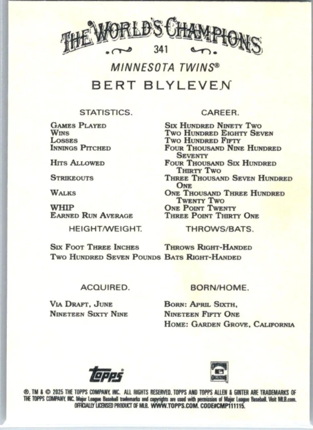 2025 Topps Allen & Ginter #341 Bert Blyleven