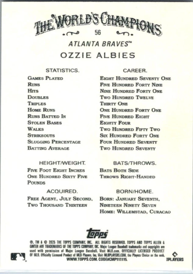 This is a nice example of a 2025 Topps Allen & Ginter #56 Ozzie Albies