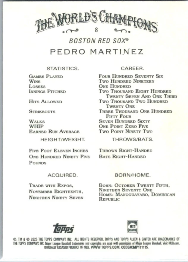 2025 Topps Allen & Ginter #8 Pedro Martinez