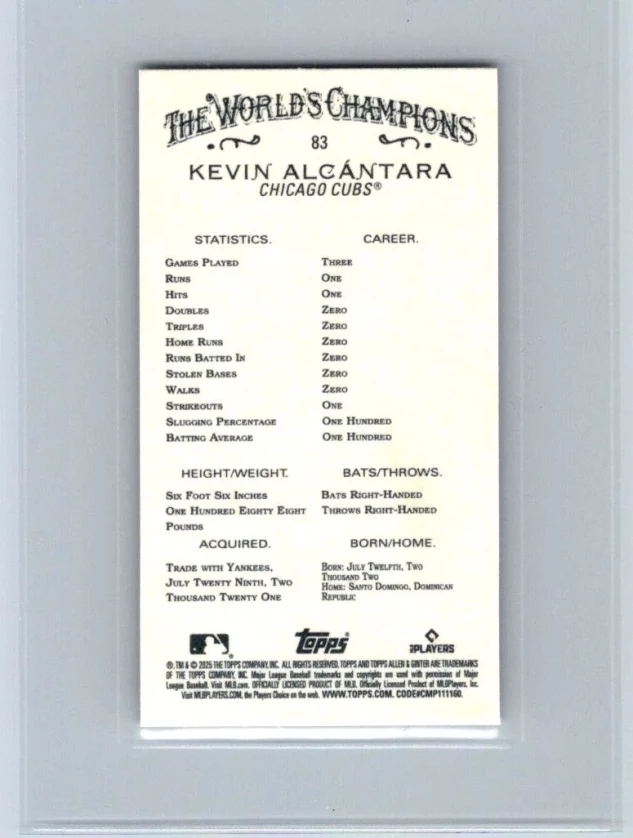 In 2025 Kevin Alcántara played for the Chicago Cubs.