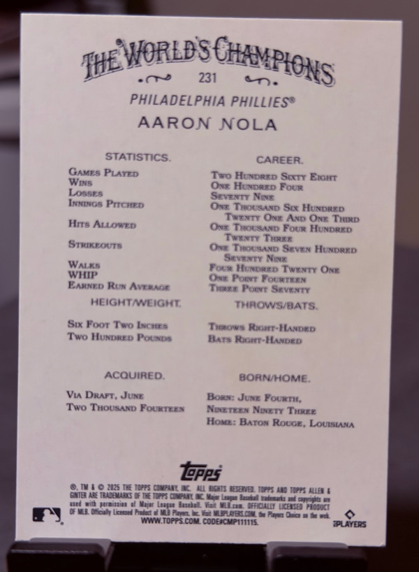 2025 Topps Allen & Ginter - Aaron Nola #231 Silver Portrait SP Phillies