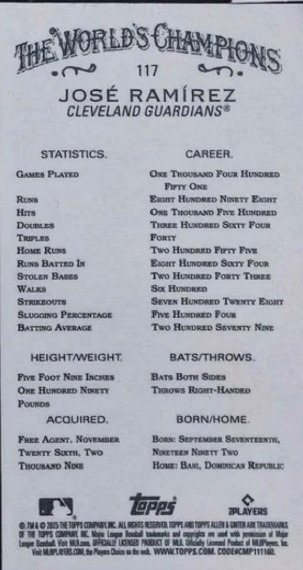 2025 Topps Allen & Ginter Black - Jose Ramirez #117 Mini
