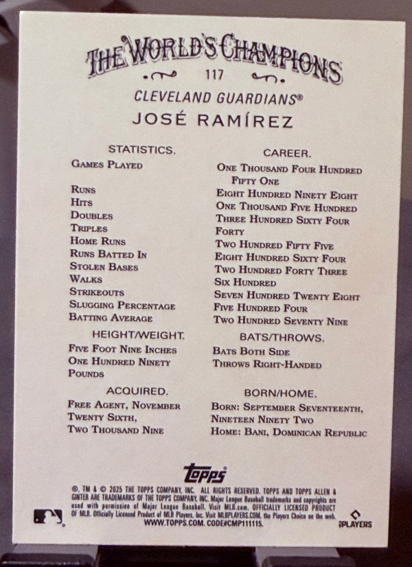 2025 Topps Allen & Ginter - Jose Ramirez #117 Silver Portrait Cleveland Indians