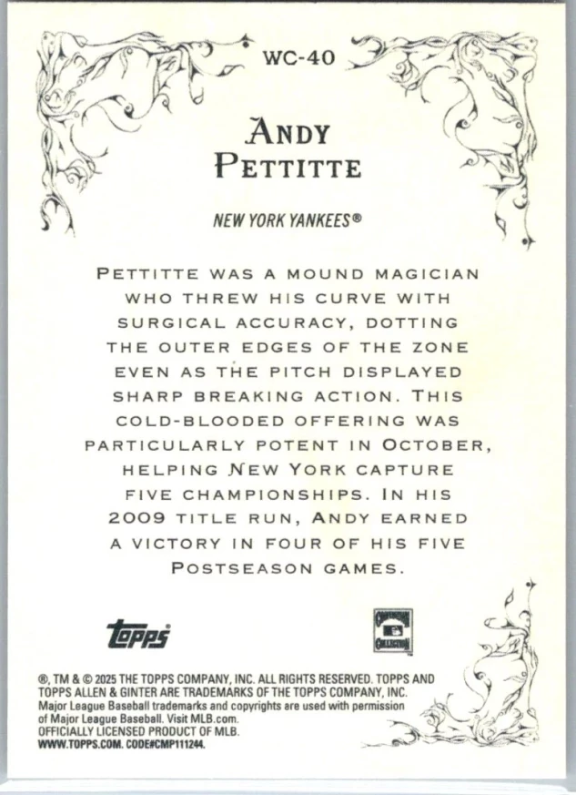 2025 Topps Allen & Ginter #WC-40 Andy Pettitte Wicked Curves
