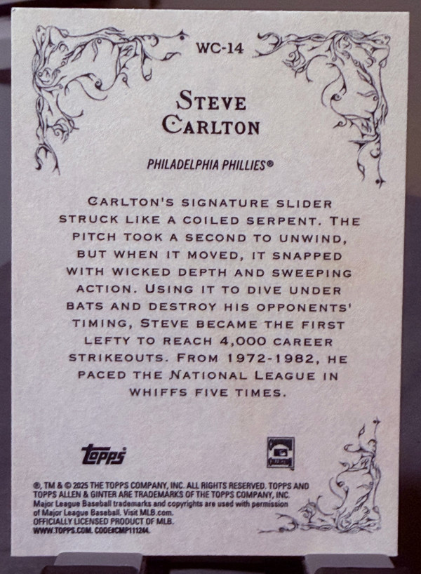 2025 Topps Allen & Ginter- Wicked Curves Steve Carlton #WC-14