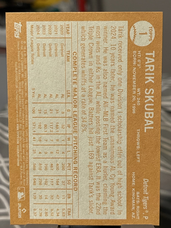 2025 Topps Archives - 1964 Topps Tarik Skubal #1