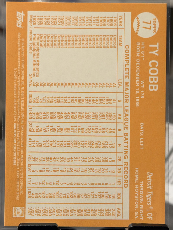 2025 Topps Archives - 1964 Topps Ty Cobb #77 Black Foilboard