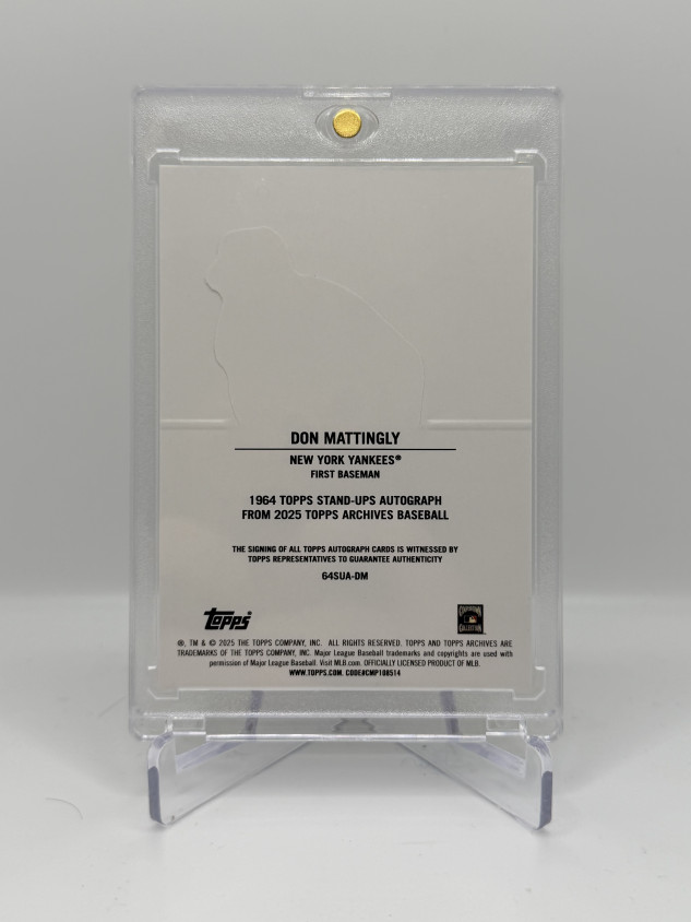 You are purchasing a 2025 TOPPS ARCHIVES DON MATTINGLY 1964 STAND-UPS AUTO. You will receive the exact item in the photographs. Thank you for looking. Check our SM for news and updates 2Kingscards