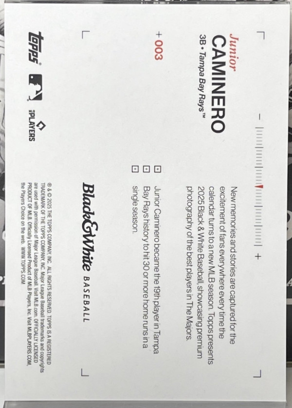 2025 TOPPS BLACK AND WHITE - Junior Caminero #003 - Tampa Bay Rays