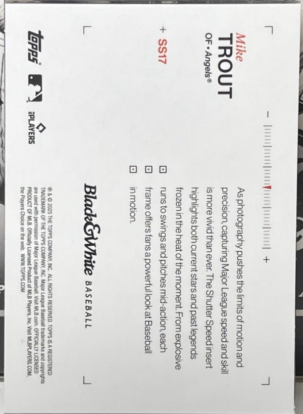 2025 TOPPS BLACK AND WHITE - Mike Trout #SS17 - Shutter Speed - Angels