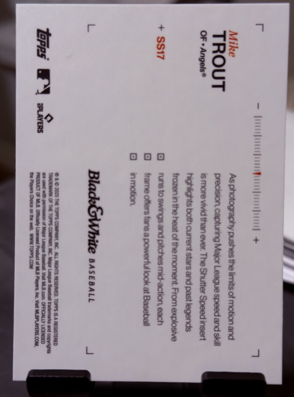 2025 Topps Black White Shutter Speed Mike Trout Los Angeles Angels #SS17 Insert