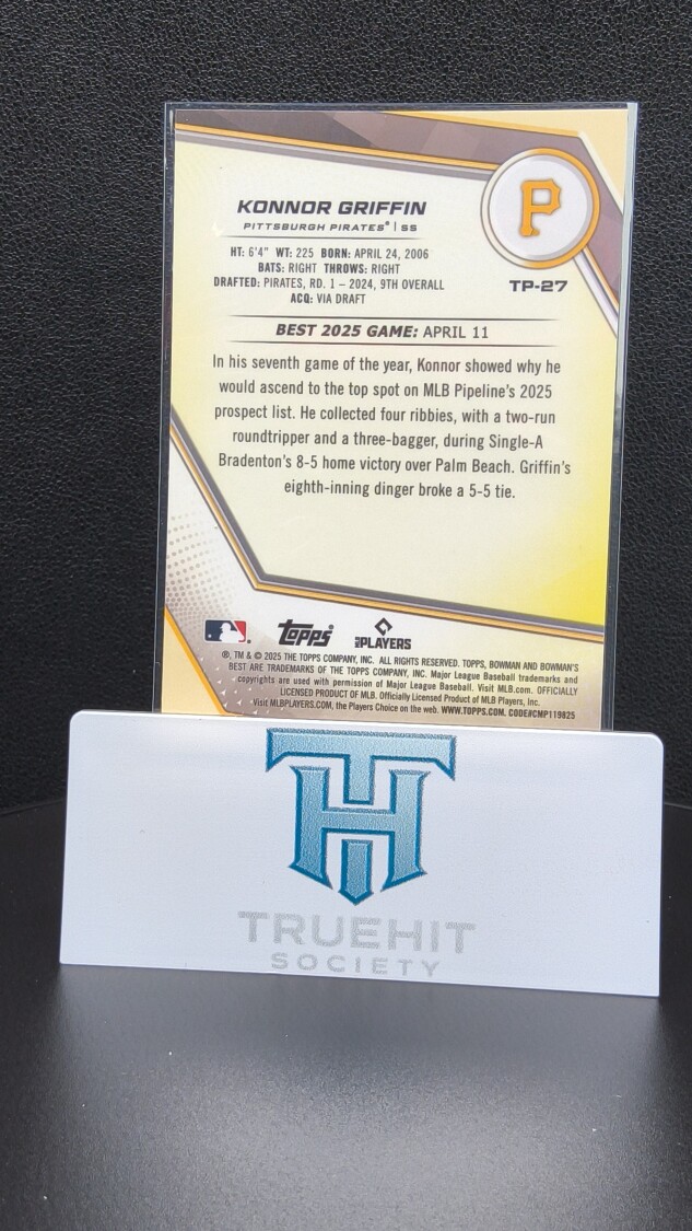 You are purchasing a 2025 Topps Bowman's Best Konnor Griffin #TP-27. You will receive the exact item in the photographs. Thank you for looking.