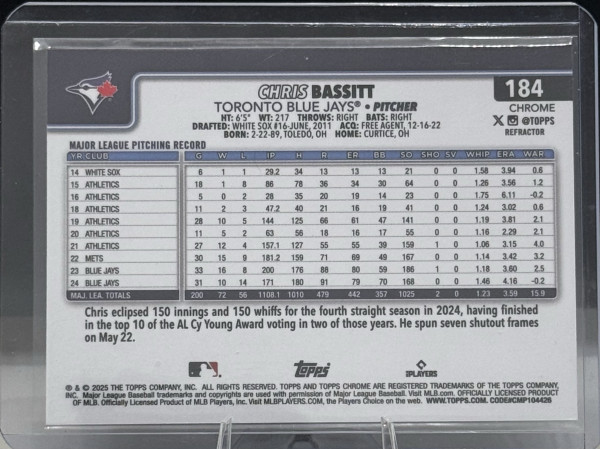 2025 Topps Chrome Chris Bassitt #184 Refractor