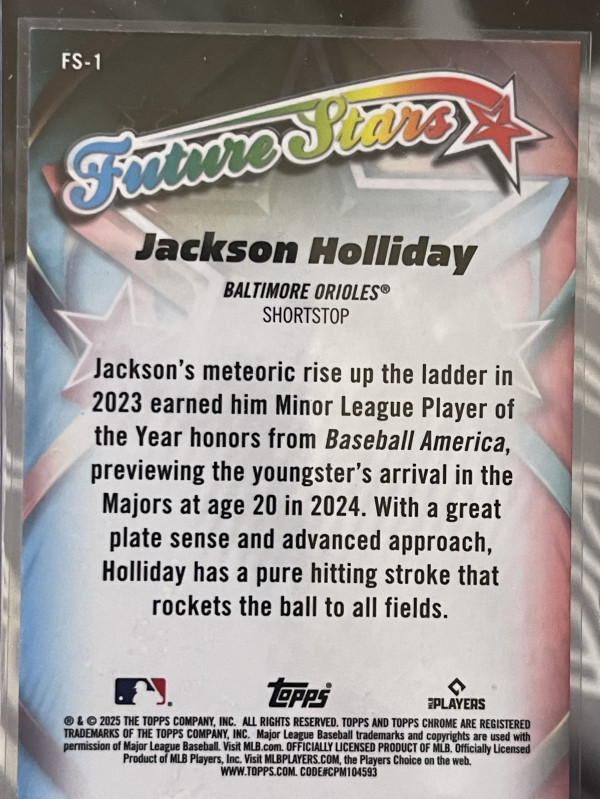 2025 Topps Chrome - Future Stars Jackson Holliday #FS-1 Green Refractor