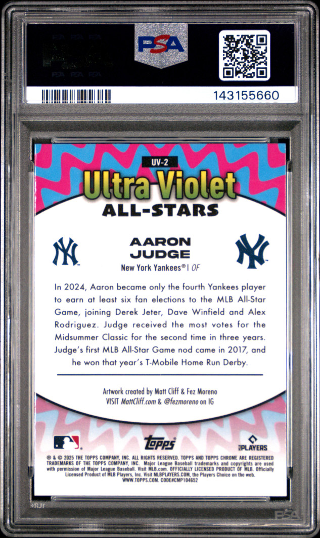 2025 Topps Chrome Ultra Violet All Stars Aaron Judge #UV2 PSA 10 GEM MINT
